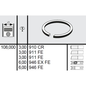 120 125 0001 00 - Set segmenti STD Ø111,76 2,38x2,38x4,74 mm Ford F3NN6149AA